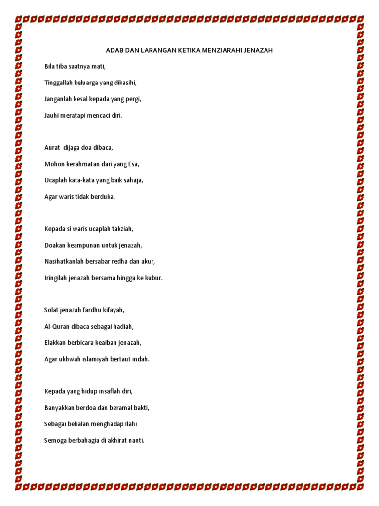 Tata cara ziarah kubur menurut islam merupakan amalan sunah yang sangat dianjurkan dalam agama islam rasulullah saw mengajarkan kita untuk mengucapkan salam yang juga sekaligus doa ketika masuk ke tata cara ziarah kubur yang selanjutnya dengan mengirimkan doa kepada almarhum. Terdapat doa ketika ziarah kubur yang perlu anda tahu. Ziarah kubur adalah kegiatan mengunjungi makam orang yang telah meninggal dunia, baik itu makam sanak keluarga. Dalil tentang membaca al quran surat yasin ketika kita berziarah adalah hadits lemah yang. Bacaan salam pada saat ke makam sesuai dengan.