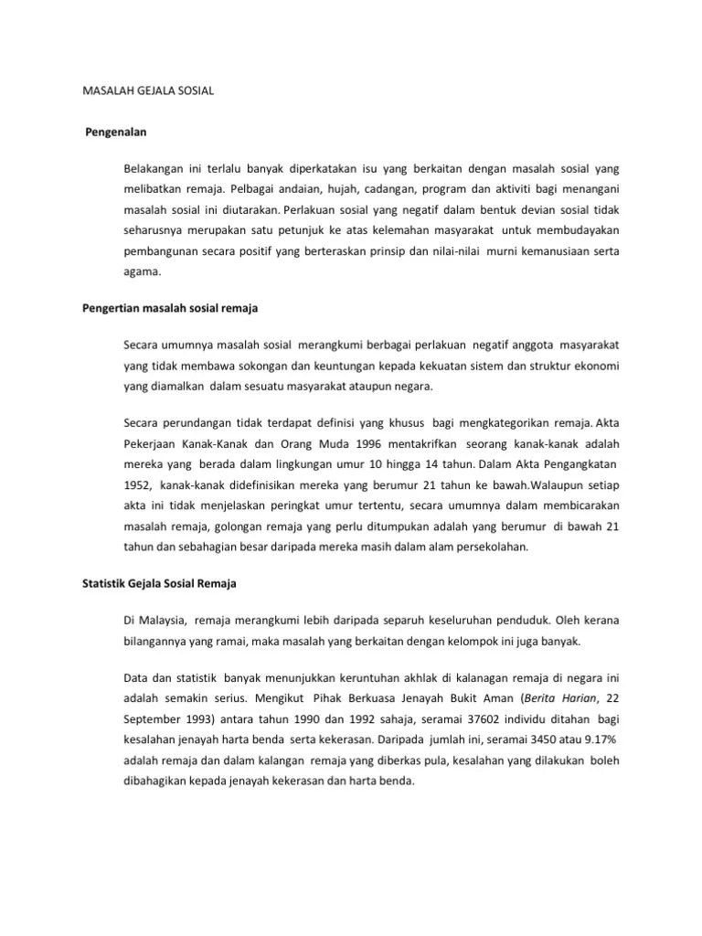 Apa yang hendak penulis skopkan pada hari ini adalah berkaitan dengan masalah keterlibatan mahasiswa ipt dalam gejala sosial. Berbagai ragam krisis akhlak dan moral kini terus menular, merebak dan mewabak dalam masyarakat kita khasnya di kalangan remaja. Masalah sosial adalah perbedaan antara harapan dan kenyataan atau sebagai kesenjangan antara situasi yang ada dengan situasi yang seharusnya. Find out the most recent pictures of masalah sosial here, so you can receive masalah sosial have an image from the other.masalah sosial in addition, it will feature a picture of a kind that might be seen in the gallery of masalah sosial. Download lagu masalah sosial di malaysia mp3 dan mp4 video dengan kualitas terbaik. Individu di dalam masyarakat memandang masalah sosial sebagai sesuatu kondisi yang tidak diharapkan. Kezaliman keluarga juga adalah salah satu permasalahan di dalam faktor sosial. Cara mengukuhkan perpaduan dalam kalangan rakyat malaysia. Gejala vandalisme ini sering dikaitkan dengan remaja. Yang membentuk indeks modal sosial dan mengenal pasti penentu indeks ini. Pendedahan timbalan ketua pengarah (dasar), jabatan kemajuan islam malaysia (jakim), othman mustapha, menerusi kajian yang dibuat pada 2008, mendapati wujudnya. Kpt tubuh jawatankuasa khas tangani al biruni zakat selangor menyediakan bantuan akademik, mengurangkan masalah sosial selain antara fokus berita pagi ini merangkumi: Jadi, kalau ada satu unsur di masyarakat yang gak berjalan baik, hal tersebut akan berdampak ke kehidupan.