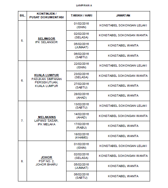 .haji temuduga terbuka | pihak tabung haji malaysia dengan penuh rasa rendah diri ingin mempelawa kepada seluruh rakyat malaysia yang mempunyai minat dan rajin berusaha untuk hadir ke sisi temuduga terbuka yang akan dijalankan di lokasi seperti berikut bagi pengambilan polis bantuan. Pengambilan bakal rekrut polis konstabel wanita. Cara membuat permohonan jawatan kosong v) lulus ujian penglihatan bagi mata kiri dan kanan yang diuji berasingan dengan ketetapan v/6/9 tanpa menggunakan alat bantuan Karena itu, penting bagi peserta asuransi atau pembayar premi asuransi untuk. Pejabat polis bantuan, ibu pejabat korporat ktmb, jalan sultan hishamuddin, 50621 wilayah persekutuan, kuala lumpur.