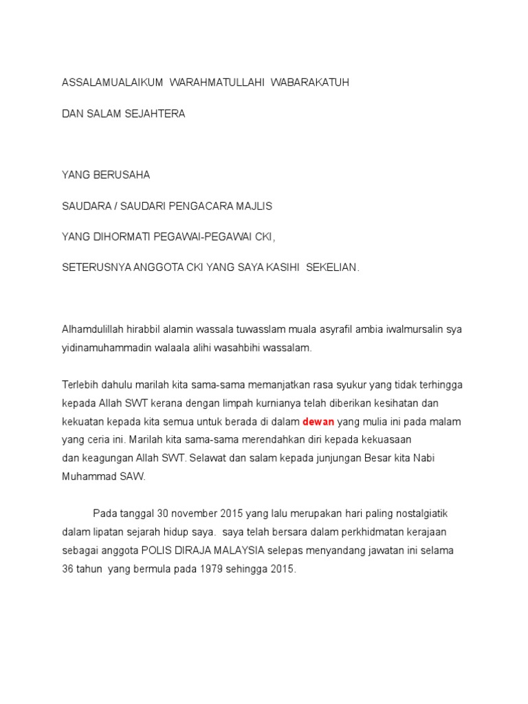 Teks ucapan majlis perpisahan persaraan. Majlis persaraan ketua jabatanfull description. Teks ucapan pengacara majlis sambutan hari raya 2015a.doc teks pengacara majlis perkahwinan Use the download button below or simple online reader. Teks ucapan wakil pelajar sempena sambutan majlis persaraan guru.